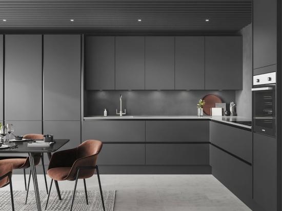 Itong puro itim modernong kusina cabinet , na may patag na anyo, ay umaayon sa mga aesthetic na pamantayan ng mga kontemporaryong kabataan.